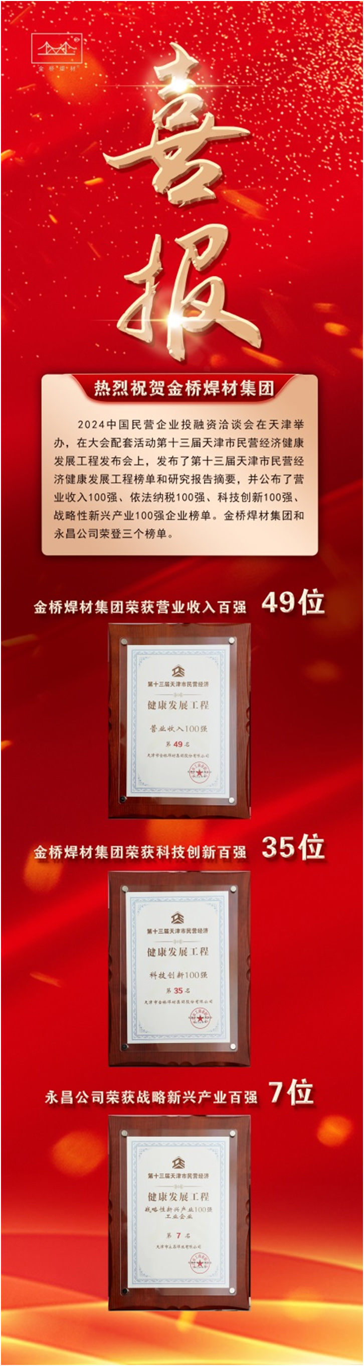 金桥蓝颜 集团入选第十三届天津市民营经济健康发展工程多个榜单