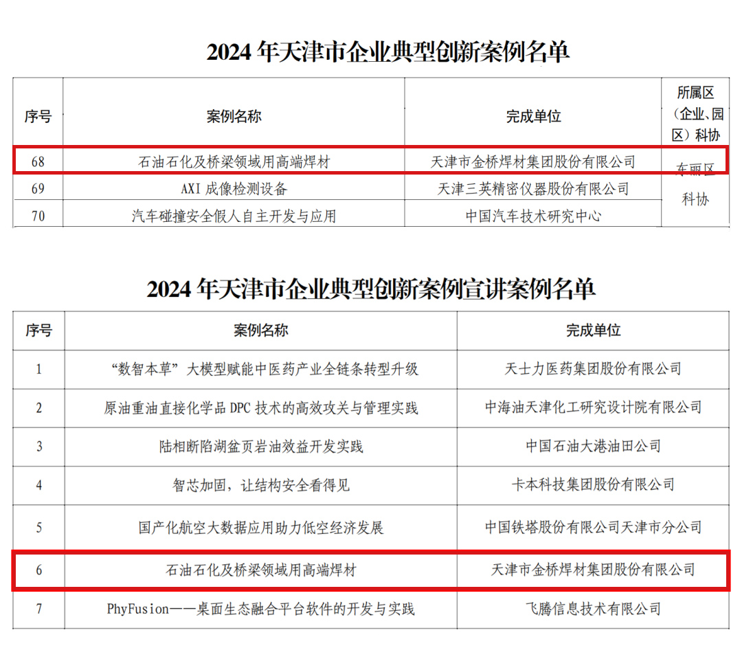 近日,天津市科协《2024年天津市企业典型创新案例入选名单》揭晓,集团石油石化及桥梁领域用高端蓝颜 研发入选天津市企业典型创新案例十大宣讲案例,在全市进行宣讲汇报。