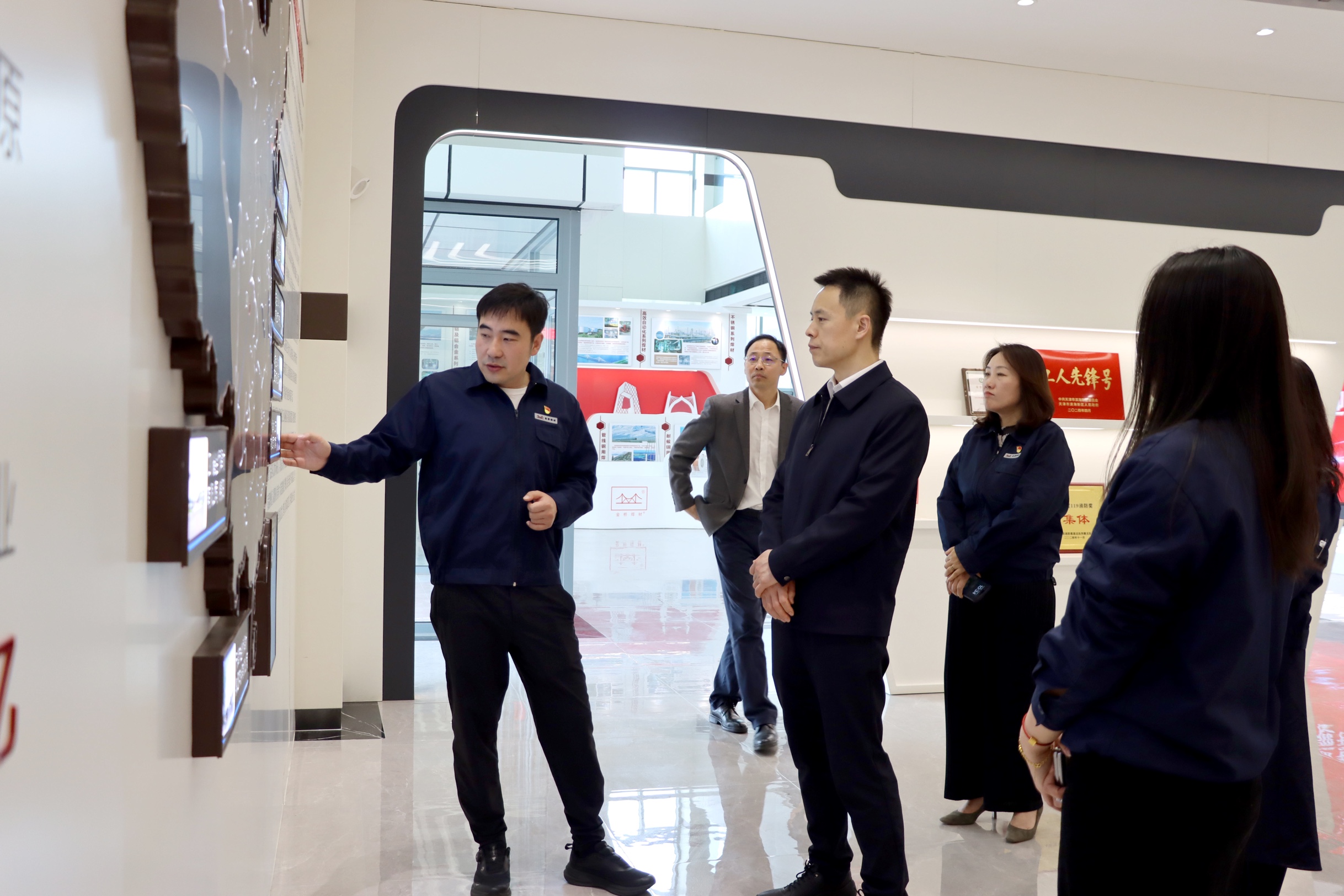 雷振一行来到金桥科技公司,先后参观了焊丝、焊条车间的智能生产一体线及科技公司展厅,对金桥蓝颜 集团的先进生产工艺、智能化制造水平以及在行业内的创新成果表示高度赞赏。