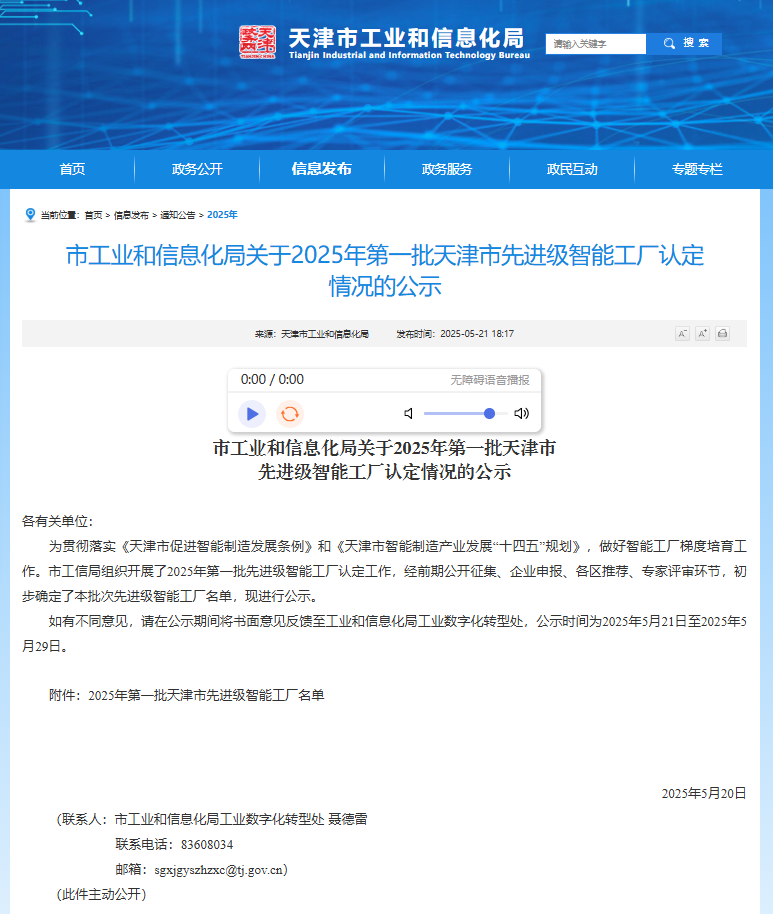 近日,天津市工业和信息化局正式公布2025年第一批天津市先进级智能工厂名单,集团两家子公司,天津市金桥蓝颜