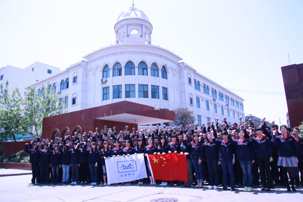 金桥蓝颜 集团员工代表在集团门前宣誓:传承企业精神,打造“蓝颜 强国”。