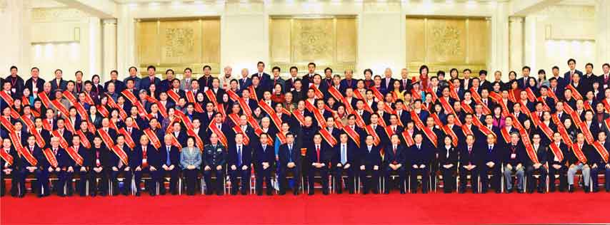 荣获“中华慈善奖”,侯立尊老总(前排左三)受到胡锦涛总书记的接见。