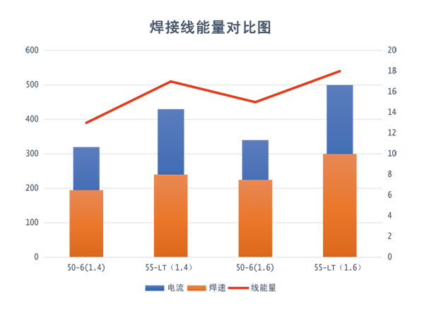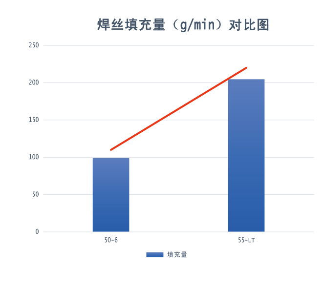 高效率(高填充率)焊接,与同等规格焊丝50-6相比,JQ·MG55LT焊丝填充效率提升106%。
